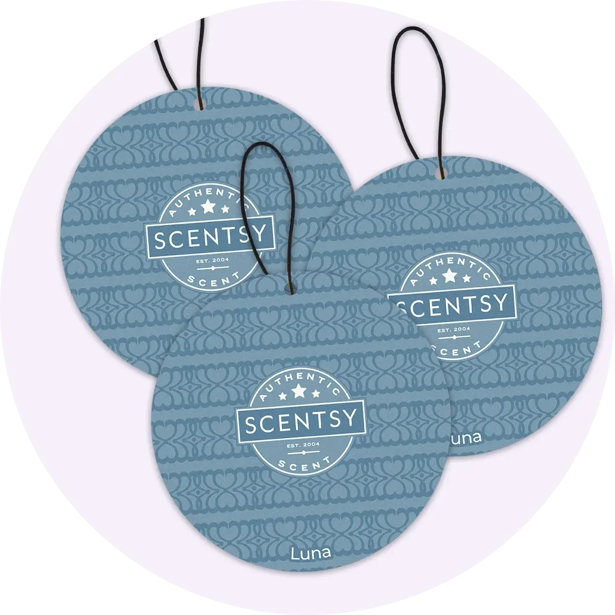 Hang ze in je auto, garderobekasten, voorraadkasten enzovoort om overal een heerlijke Scentsy-geur te verspreiden. Bestaat uit drie Cirkels in dezelfde geur.